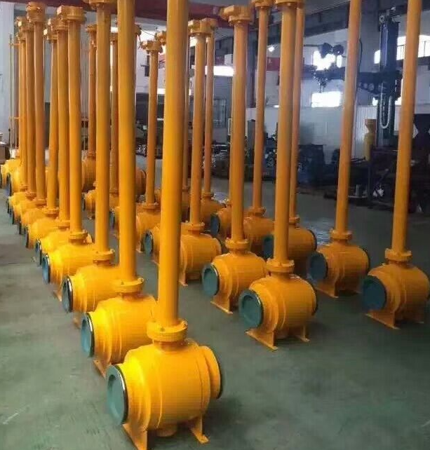 對(duì)于埋地安裝的閥門,根據(jù)安裝和操作的需要,可對(duì)閥門的閥桿進(jìn)行加長(zhǎng),加長(zhǎng)閥桿的尺寸按客戶的要求。所有排污管、排氣管和緊急注脂裝置都相應(yīng)加長(zhǎng),其他相關(guān)管道緊貼閥門的加長(zhǎng)部位,將閥門排污閥、放空閥以及注脂閥接到地面安裝,以便對(duì)主閥進(jìn)行定期維護(hù),閥門表面按規(guī)范覆耐腐蝕瀝青、聚氨酯或者環(huán)氧樹脂等涂層,以適應(yīng)埋地安裝使用工況。